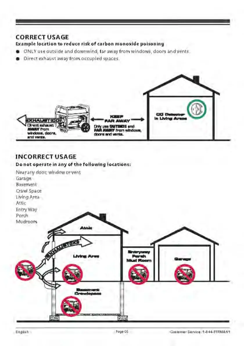 Example location to reduce risk of carbon monoxide poisoning