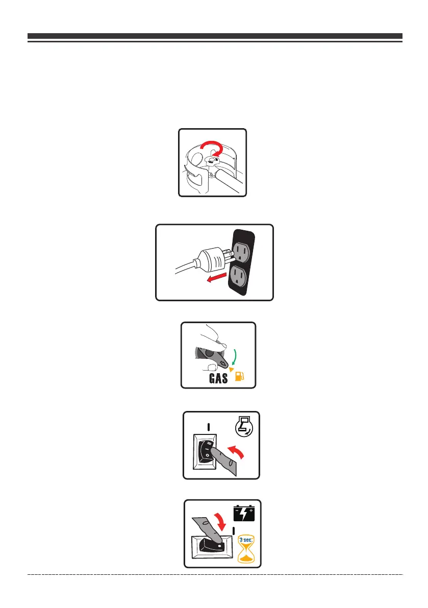 3.If connected make sure the LPG cylinder knob is fully closed or disconnected.