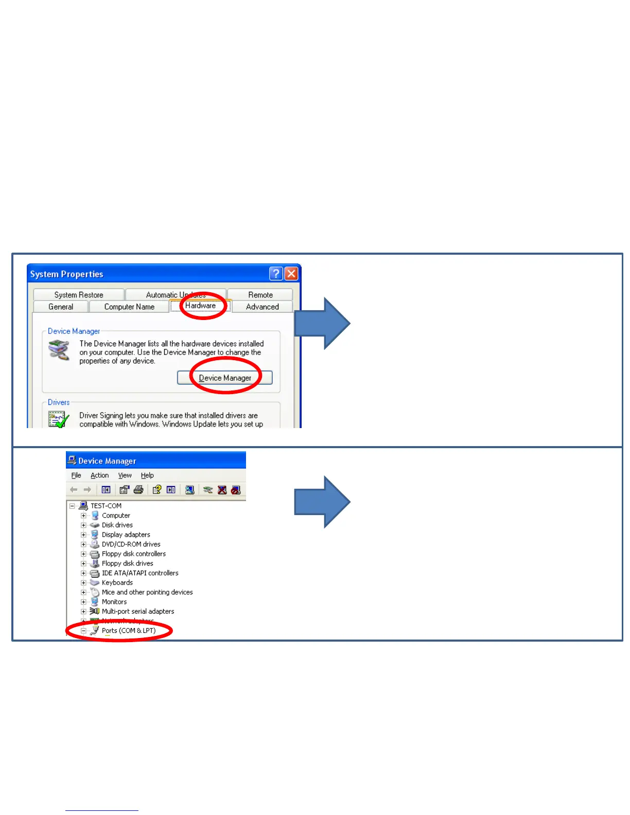(2) “Device Manager” & “Port” Selection