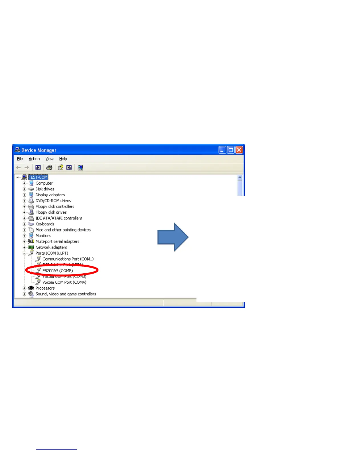 • "COM5" creation is confirmed in