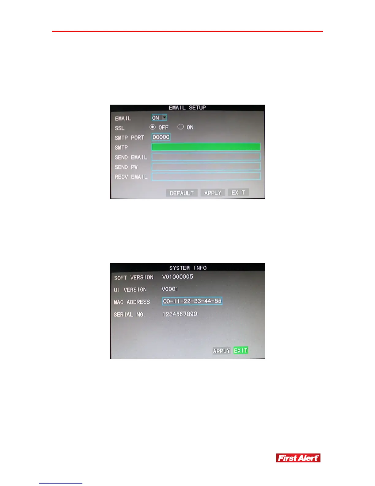 the system. Use the E-mail Setup menu to set the system parameters. Click APPLY to save