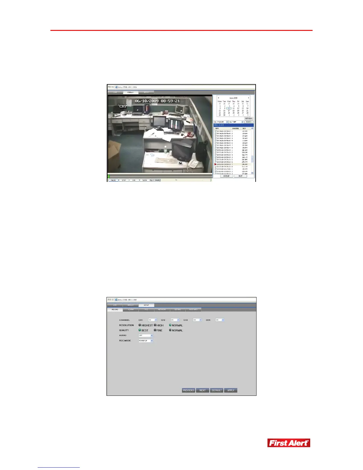 Click SETUP to access the setup interface. Use this screen to access the Record, Alarm,