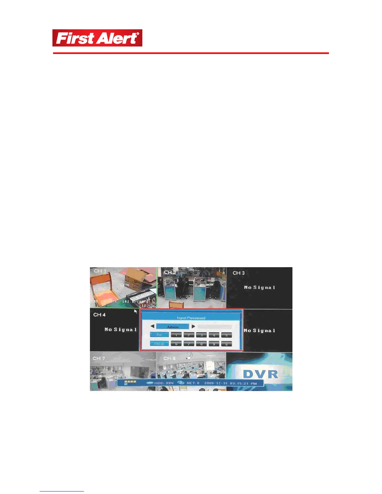 Note: If you have not yet installed a hard disk drive in the DVR, a buzzer will sound