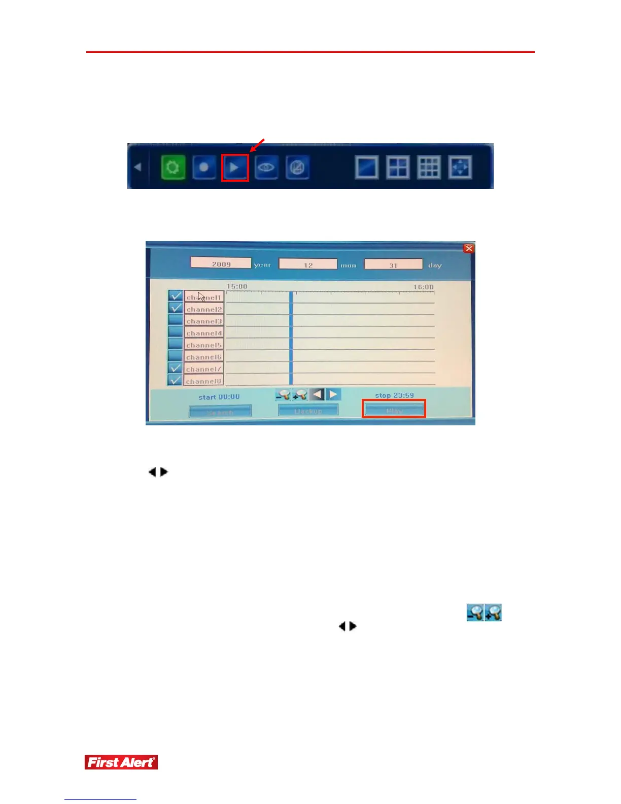 Use the Video Playback menu to select the date/time and channel you wish to view. See