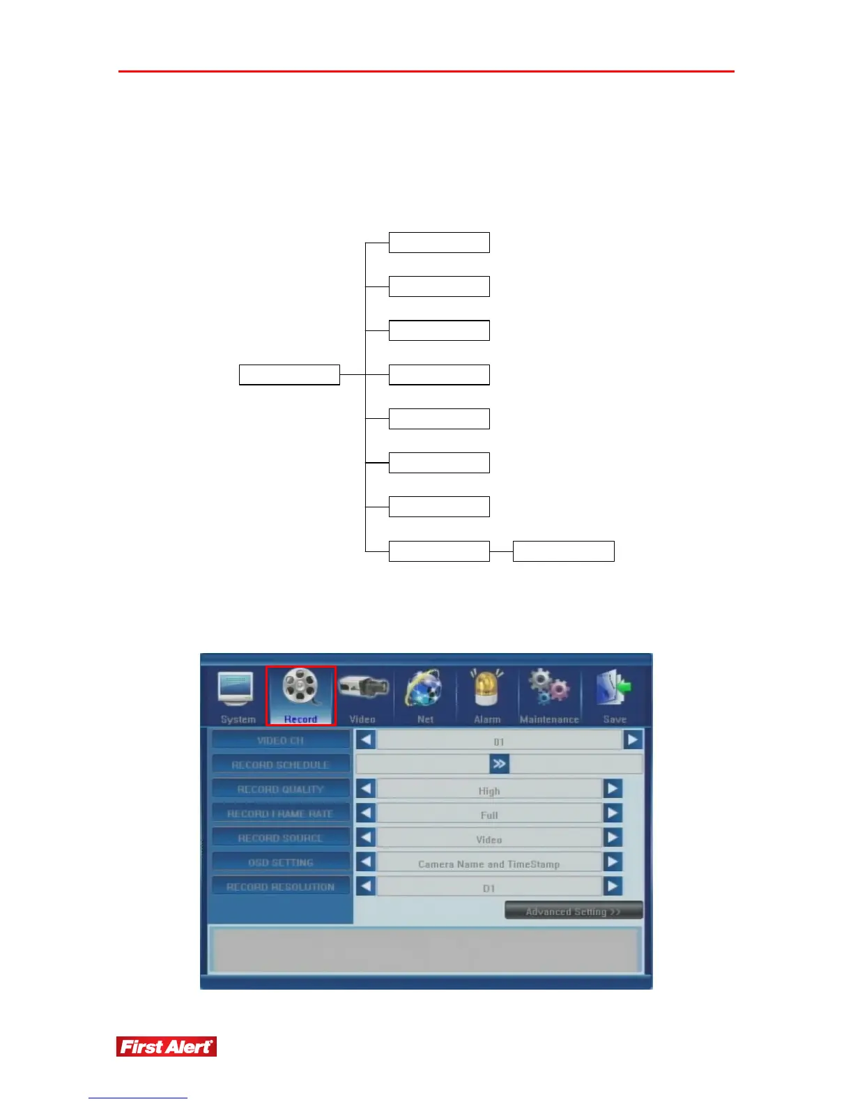 Click the Record button on the System Configuration menu to access the Record Settings