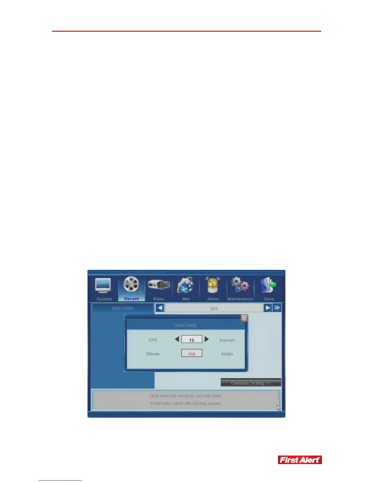 The Advanced Setting (lower right-hand corner) has one menu – Sub Code. The DVR can