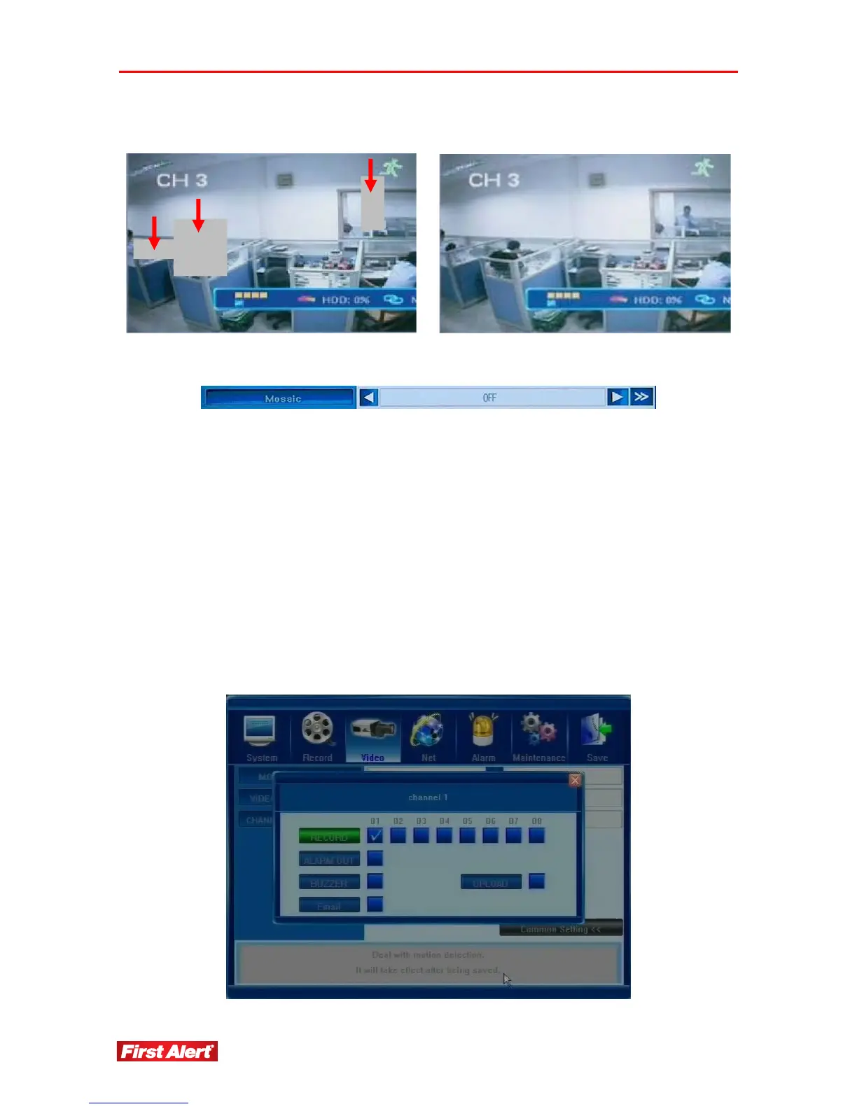 Select OFF in the Mosaic field to remove a privacy zone(s) or cancel the option.