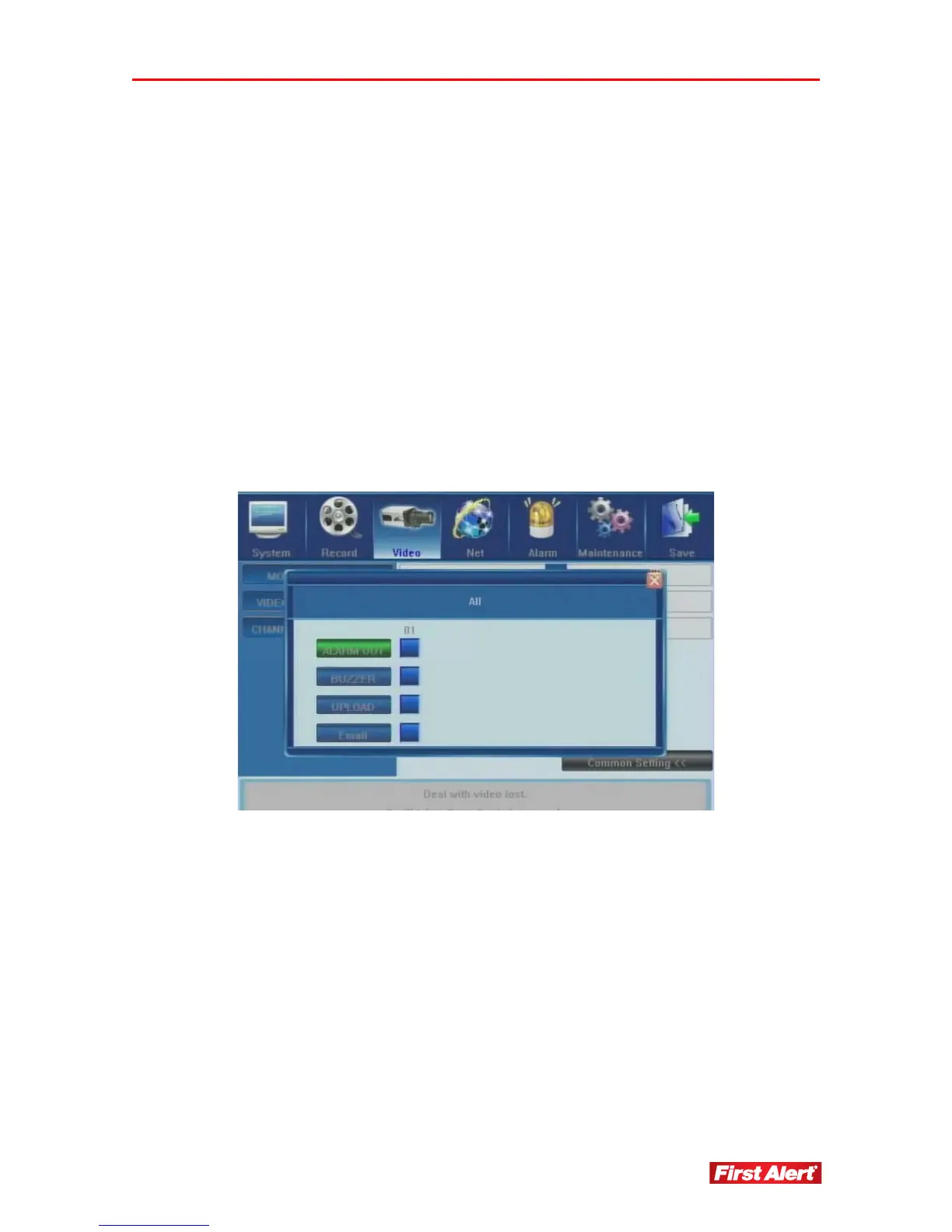 BUZZER Select to enable the internal buzzer when video loss is detected.