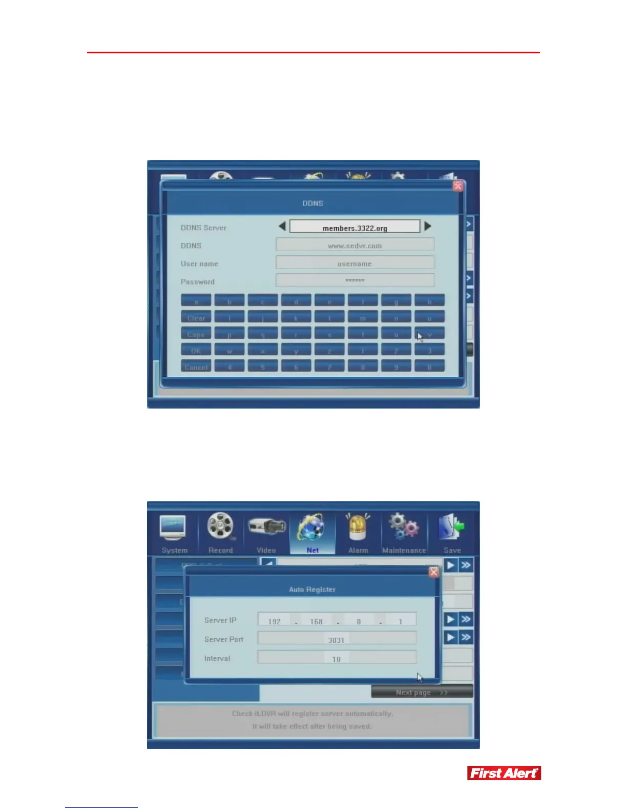 access the DDNS settings window and set the DDNS Server, User Name, and Password.