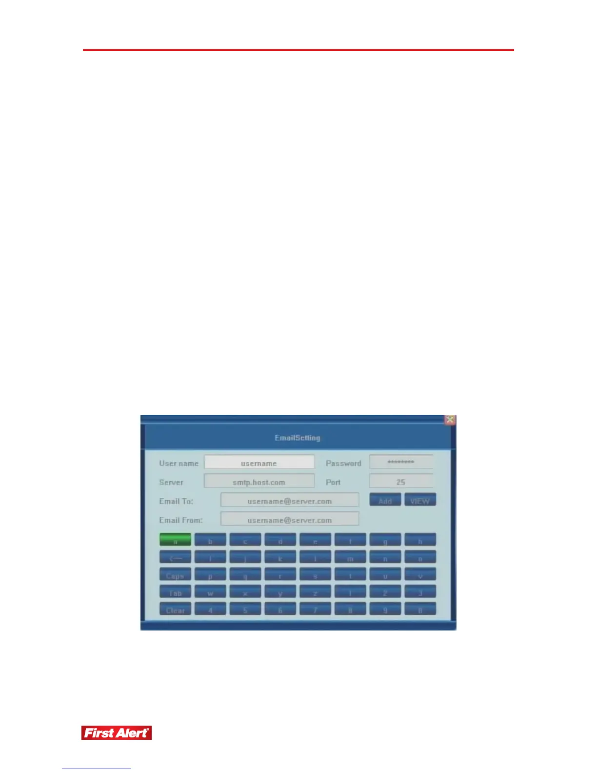 Click the >> button to access the Email Setting window. Use the keypad to enter the email