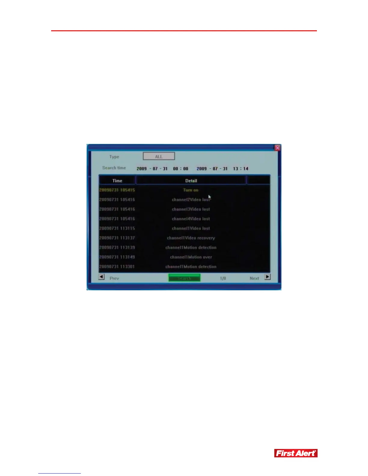 Exception, and Alarm). In the Search Time field, enter the search date and time for the log.