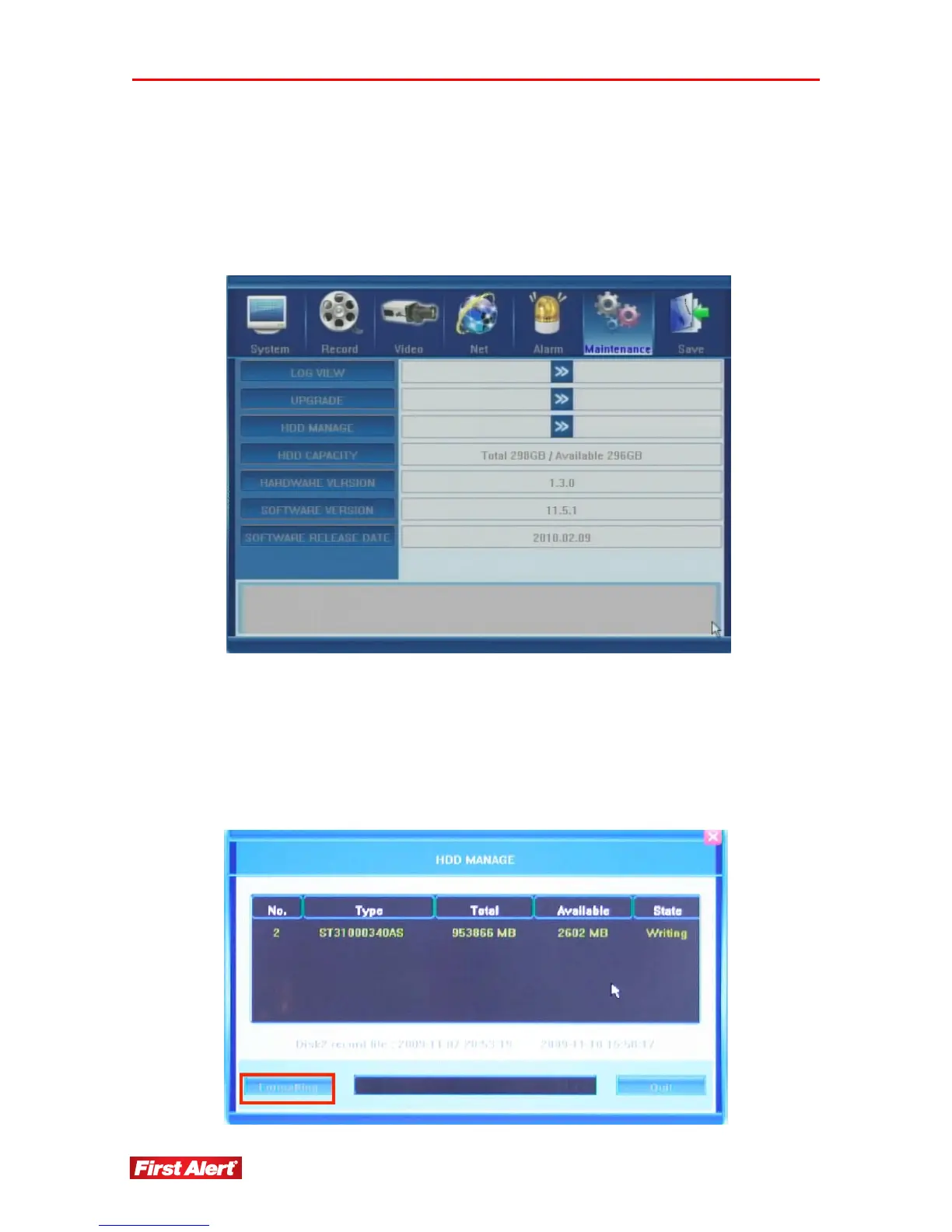Note: Before recording video and audio feeds, the HDD must be formatted using the