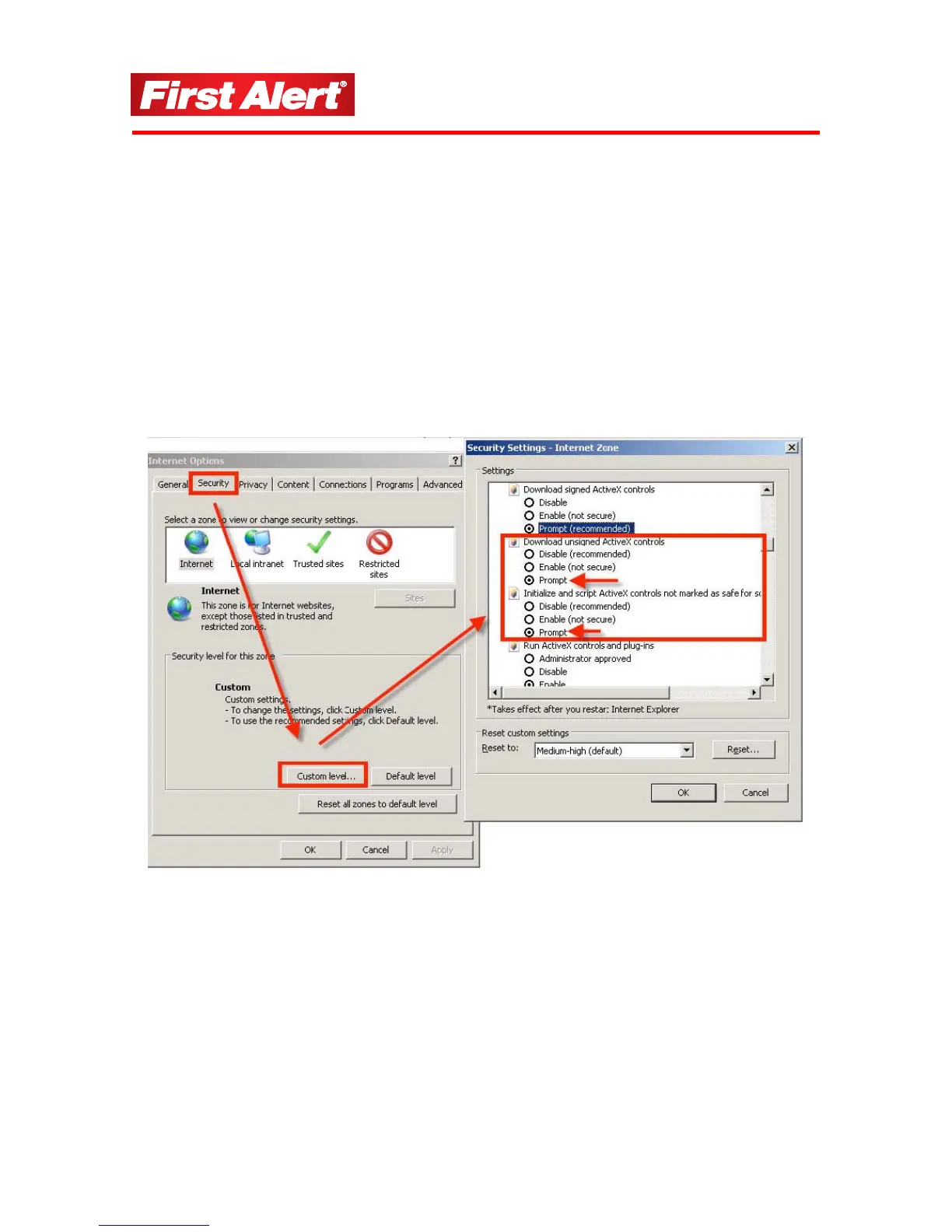Enable (or Prompt) in the “Initialize and script ActiveX controls not marked as safe for