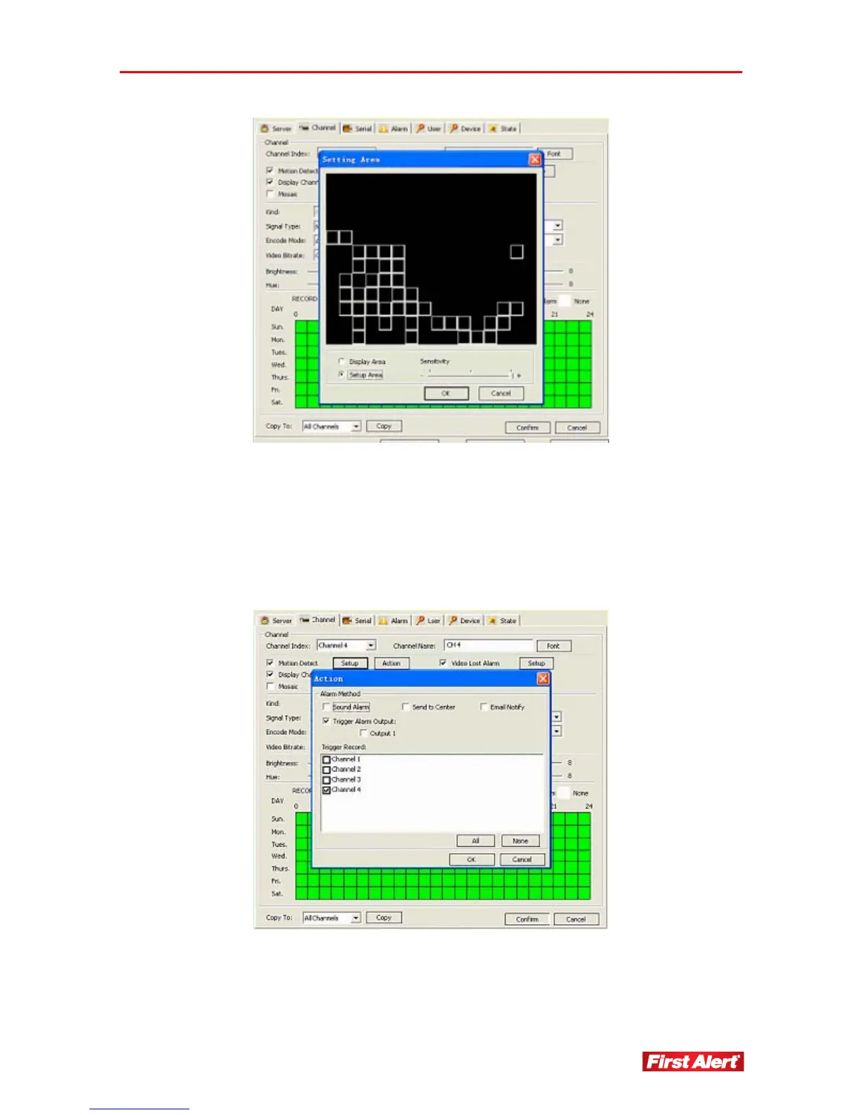 recording an alarm, check the appropriate boxes on the list under the Trigger