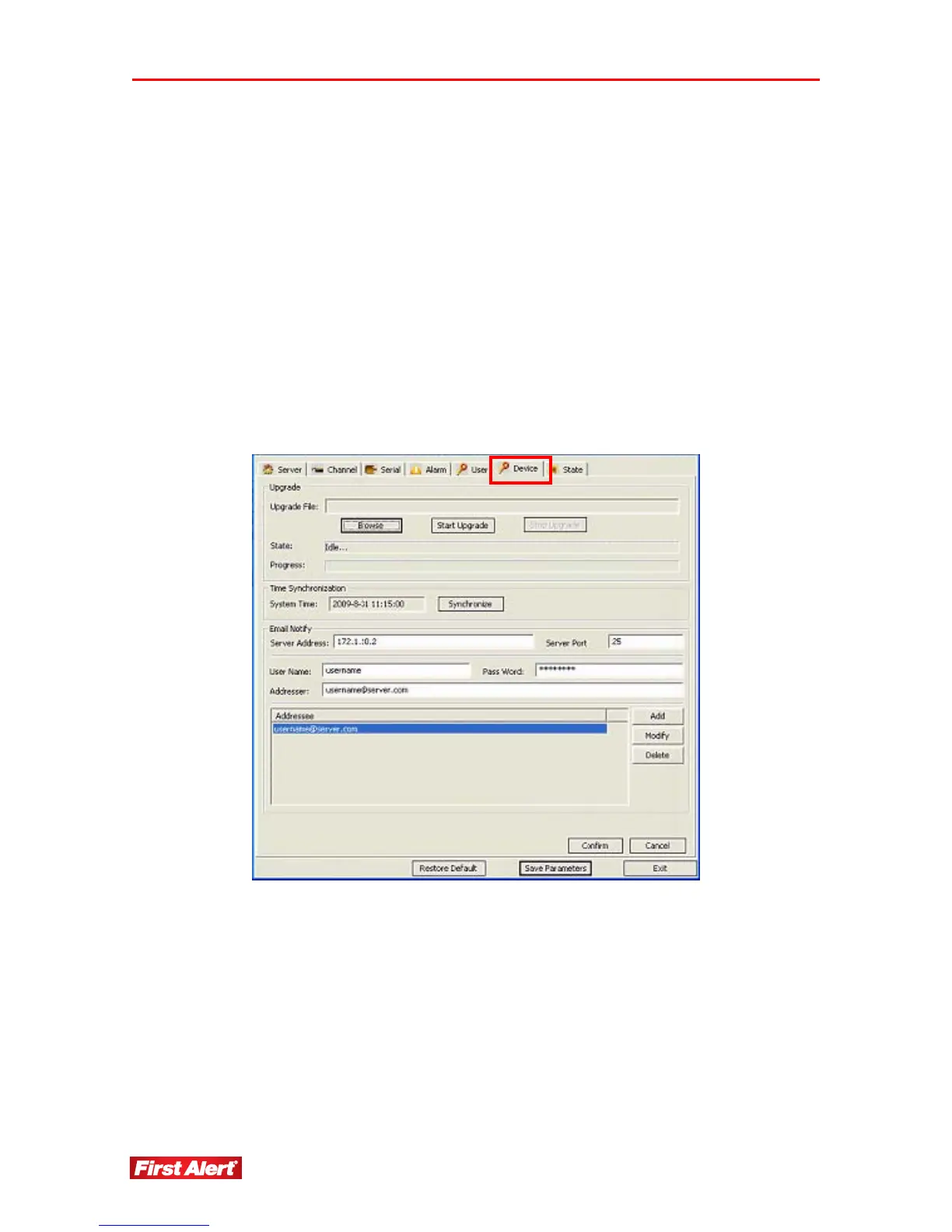 Click the Device tab to open the Device Parameters menu for firmware upgrades and time