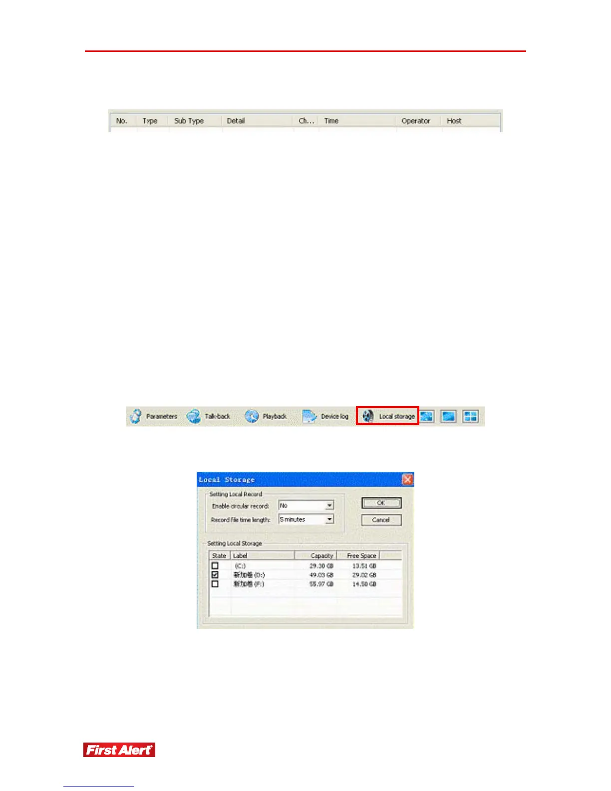 Set local storage drive (State, Label (disc or hard drive), Capacity, and Free