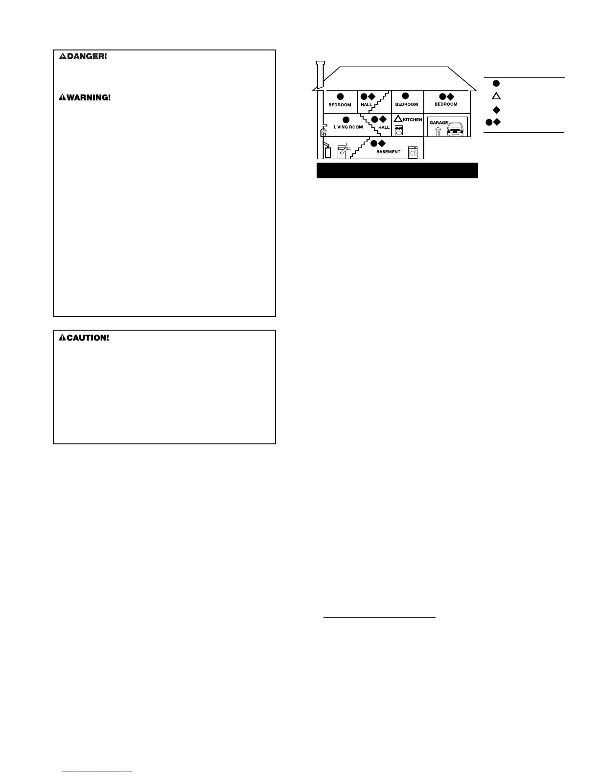 For additional coverage, install Alarms in all rooms, halls, and storage