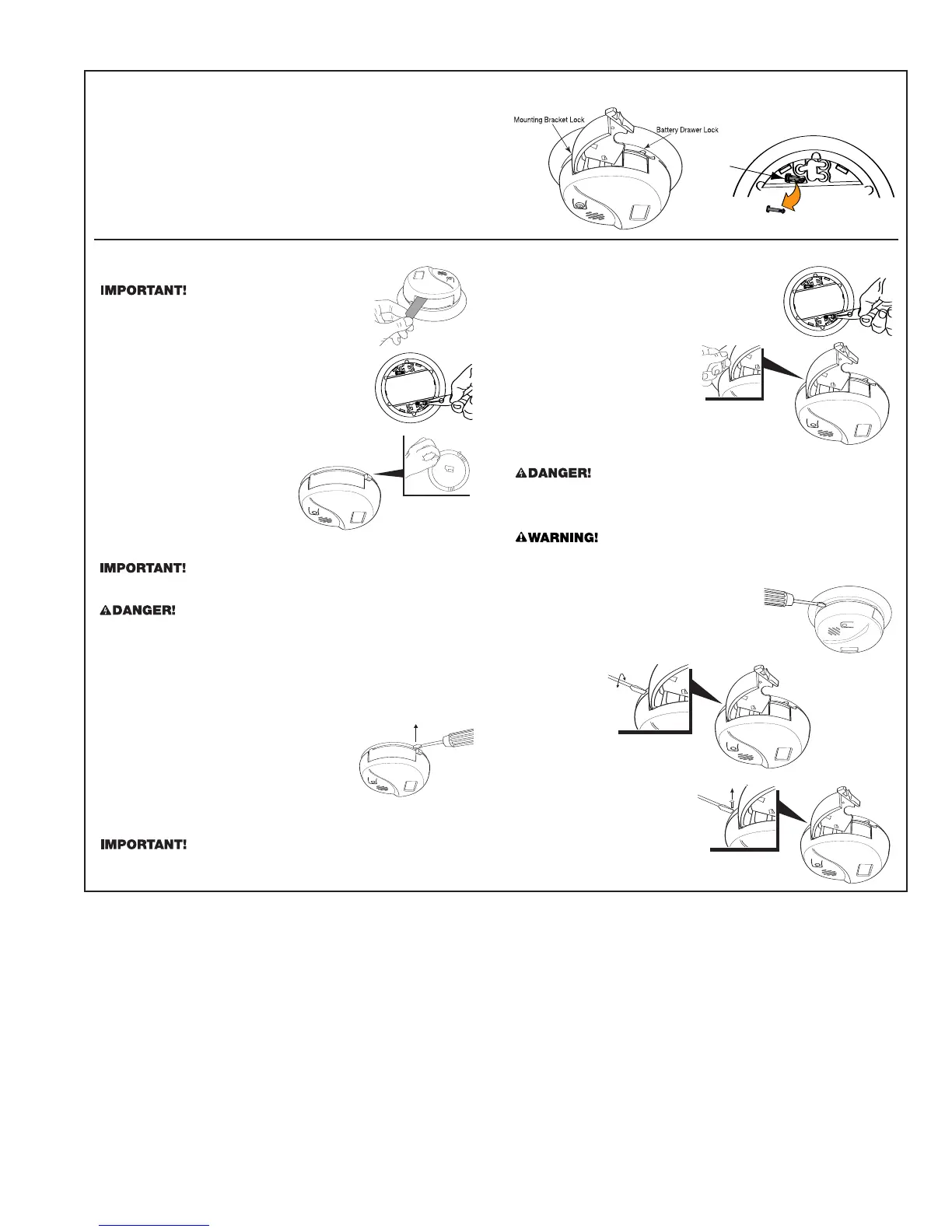 compartment, and the other locks the CO Alarm to the mounting bracket.