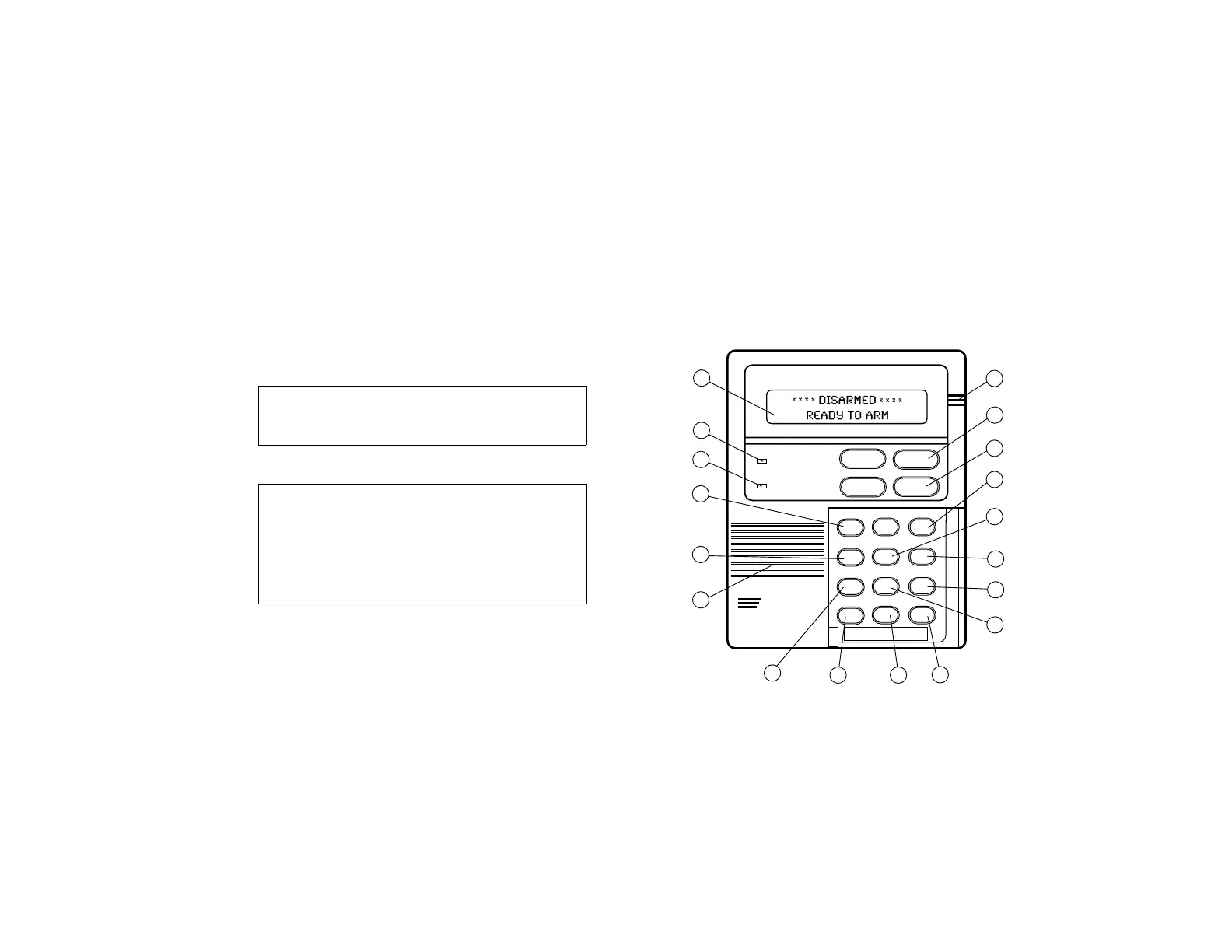 15. ARMED INDICATOR: (RED) Lit when the system has