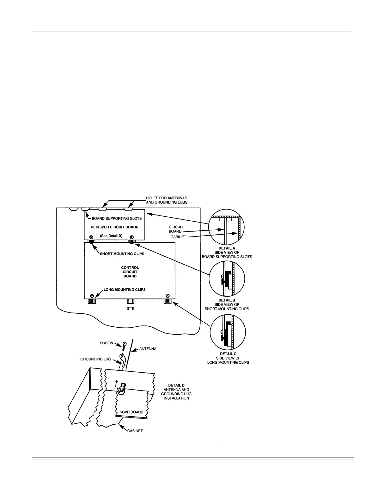 clips at the lower edge of the board (see Detail C).