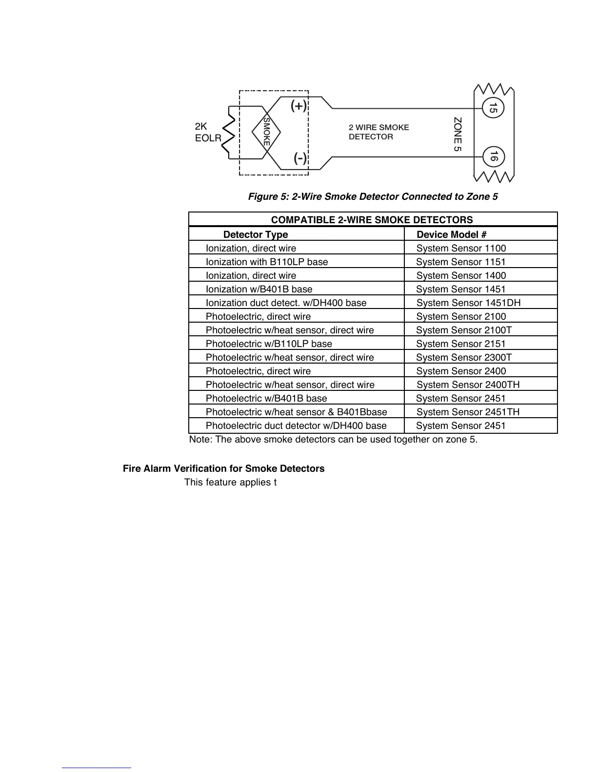 Figure 5: 2-Wire Smoke Detector Connected to Zone 5