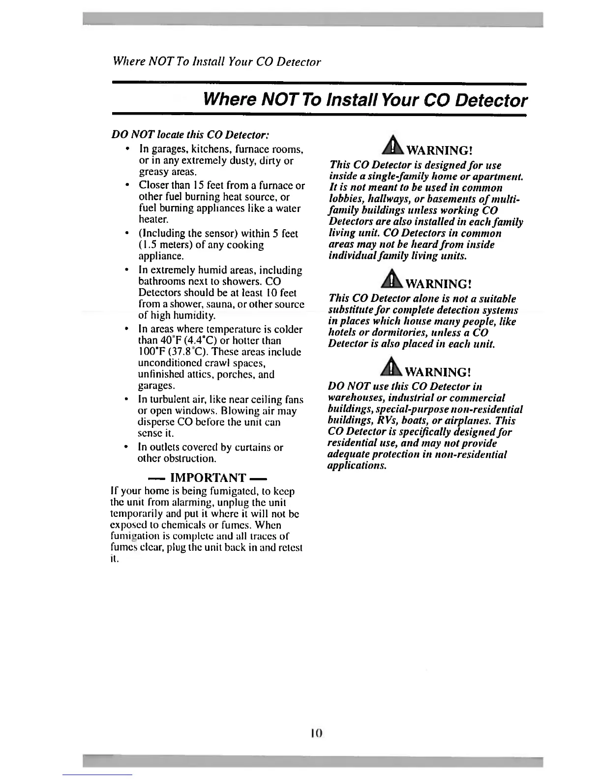 First Alert FCD2DD - Where NOT To Install Your CO Detector; Locations to Avoid; Building Type Restrictions