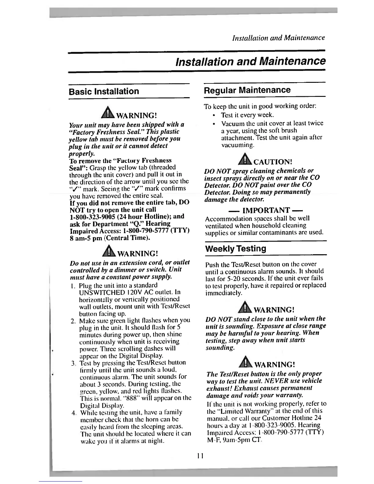 First Alert FCD2DD - Installation and Maintenance; Basic Installation Steps; Regular Maintenance; Weekly Testing