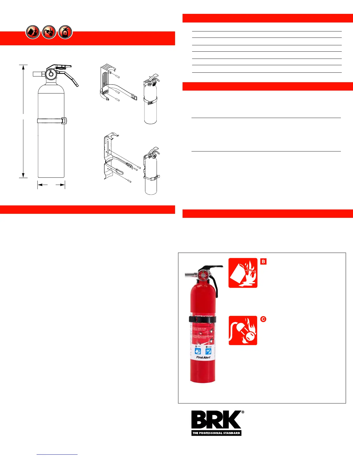 The fire extinguisher shall be a First Alert Model FE10GR and shall provide at a