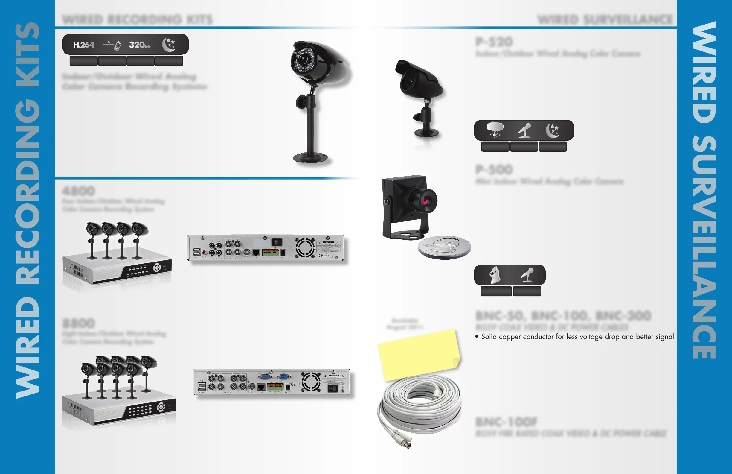 60ft.BNCAVcablepercamera,PowerSupplies(camerasandDVR),SplitterCable,