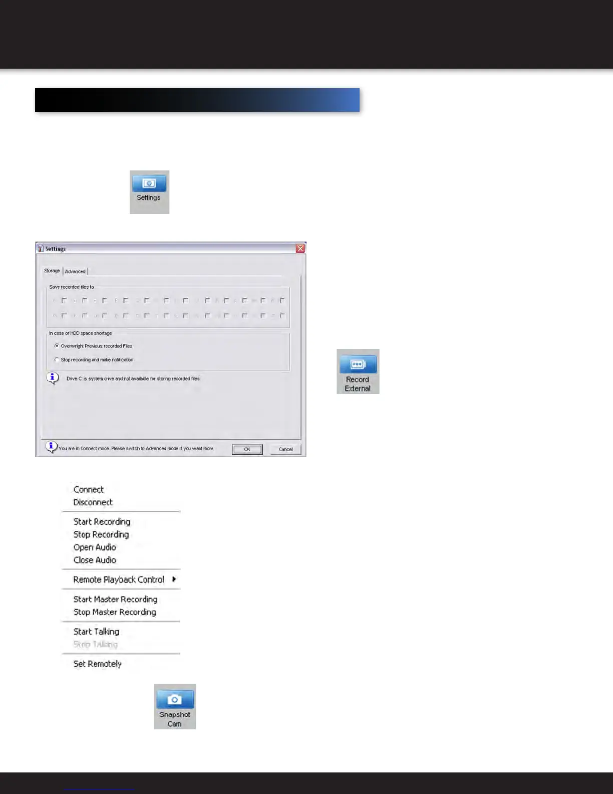recording. All recordings will be saved to the external