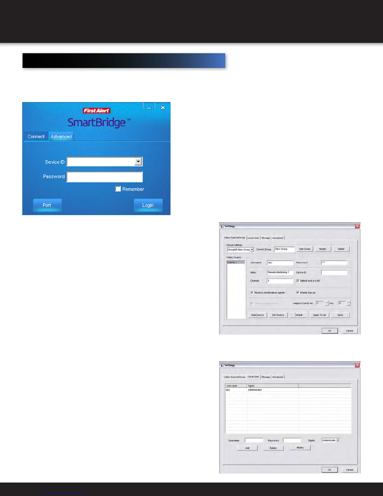 Smartbridge Remote viewer software. Administrator has full access