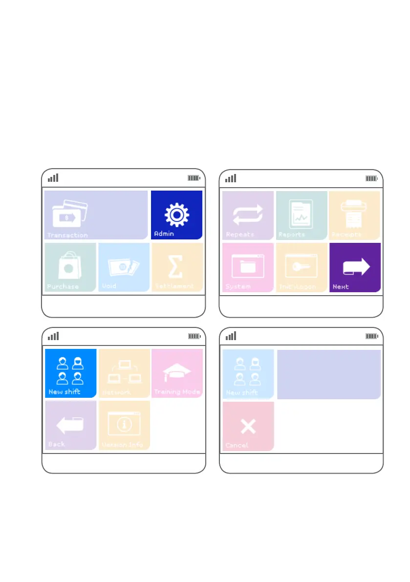 Use the following steps to manage shifts and obtain shift reports using the shift change function.