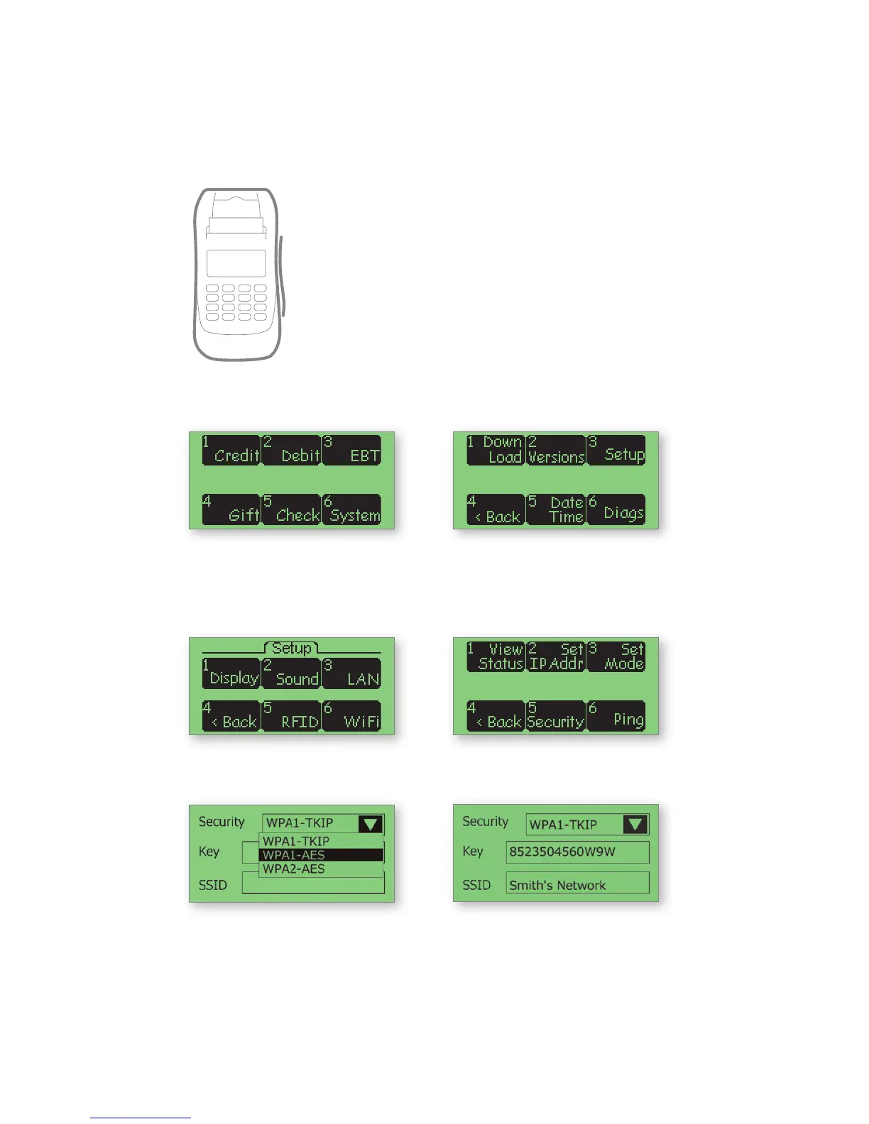 Wi-Fi settings on the terminal