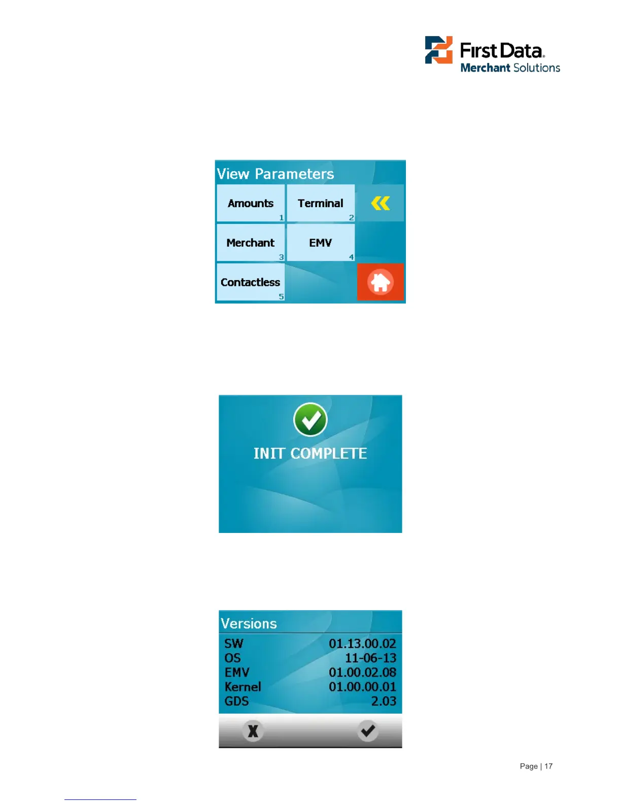 This function allows the user to review the current versions of the software loaded into the FD40 terminal.
