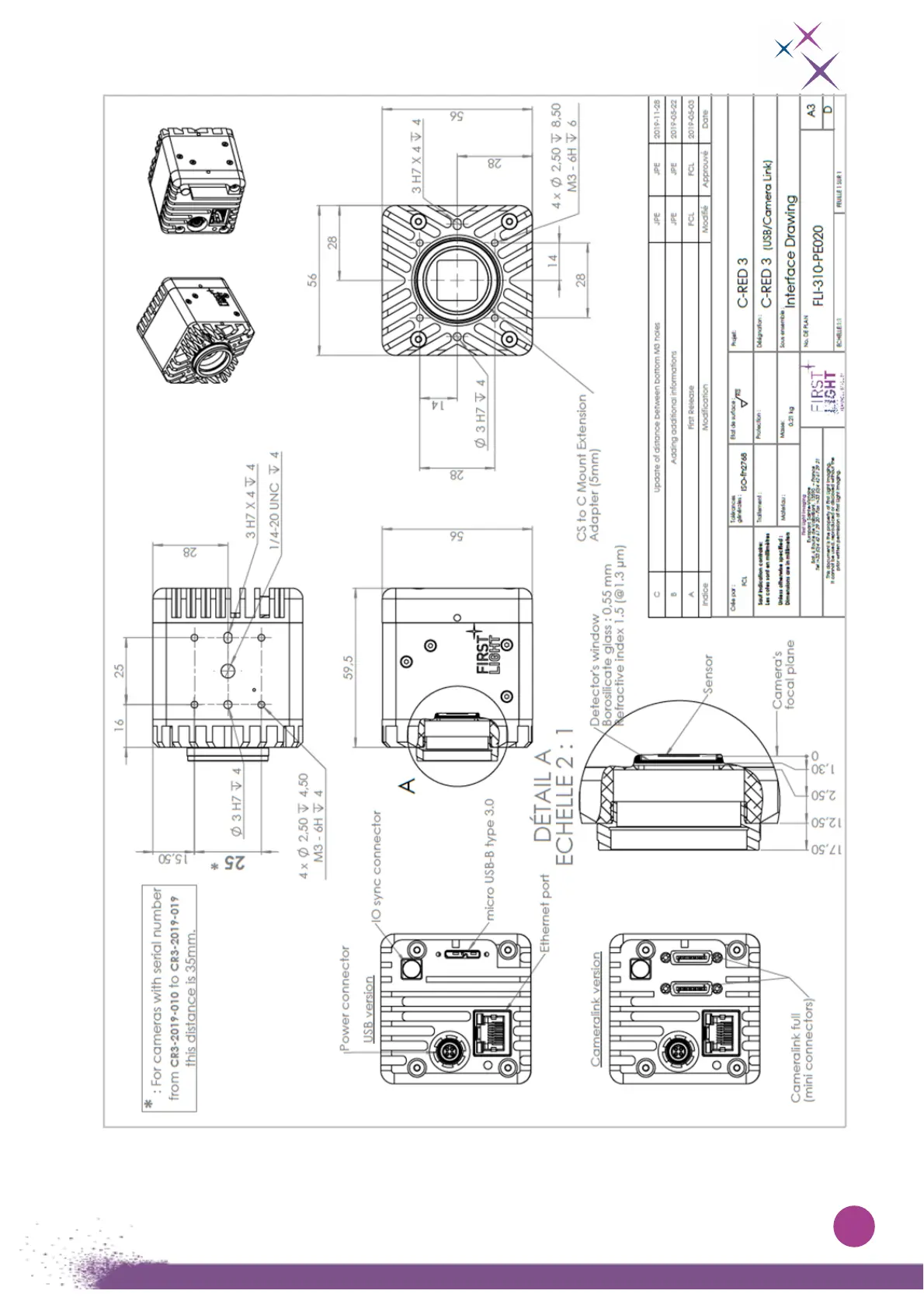 For cameras with serial number from CR3-2019-010 to CR3-2019-019 the distance between bottom M3