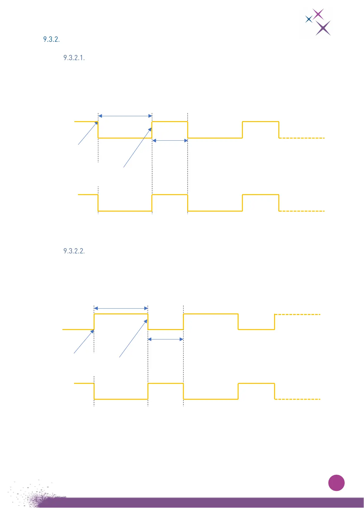 rising edge triggers the start of integration, the falling edge triggers the frame readout and the time