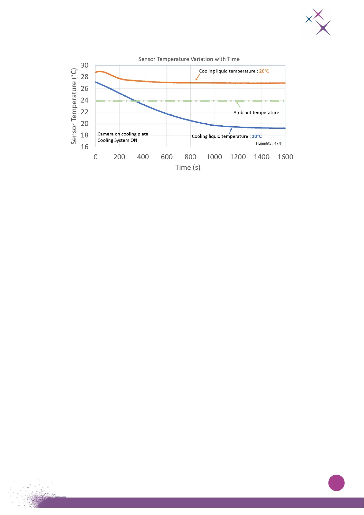 C-RED 3 Sensor Temperature Variation with Time: Cooling plate with 20°C and 10°C cooling liquid