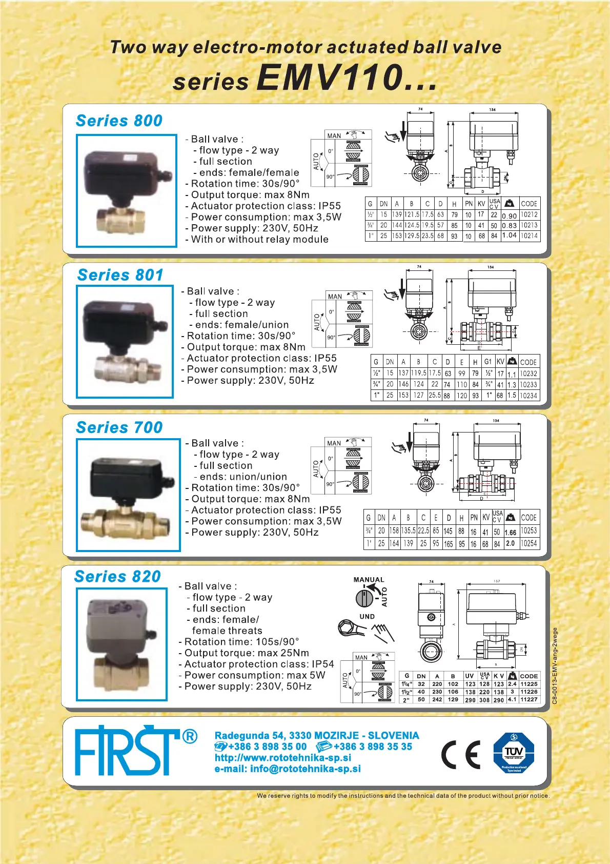 First EMV 110 710/550-4 - Electric Motor Actuated Ball Valves; Two-Way Electro-Motor Ball Valves