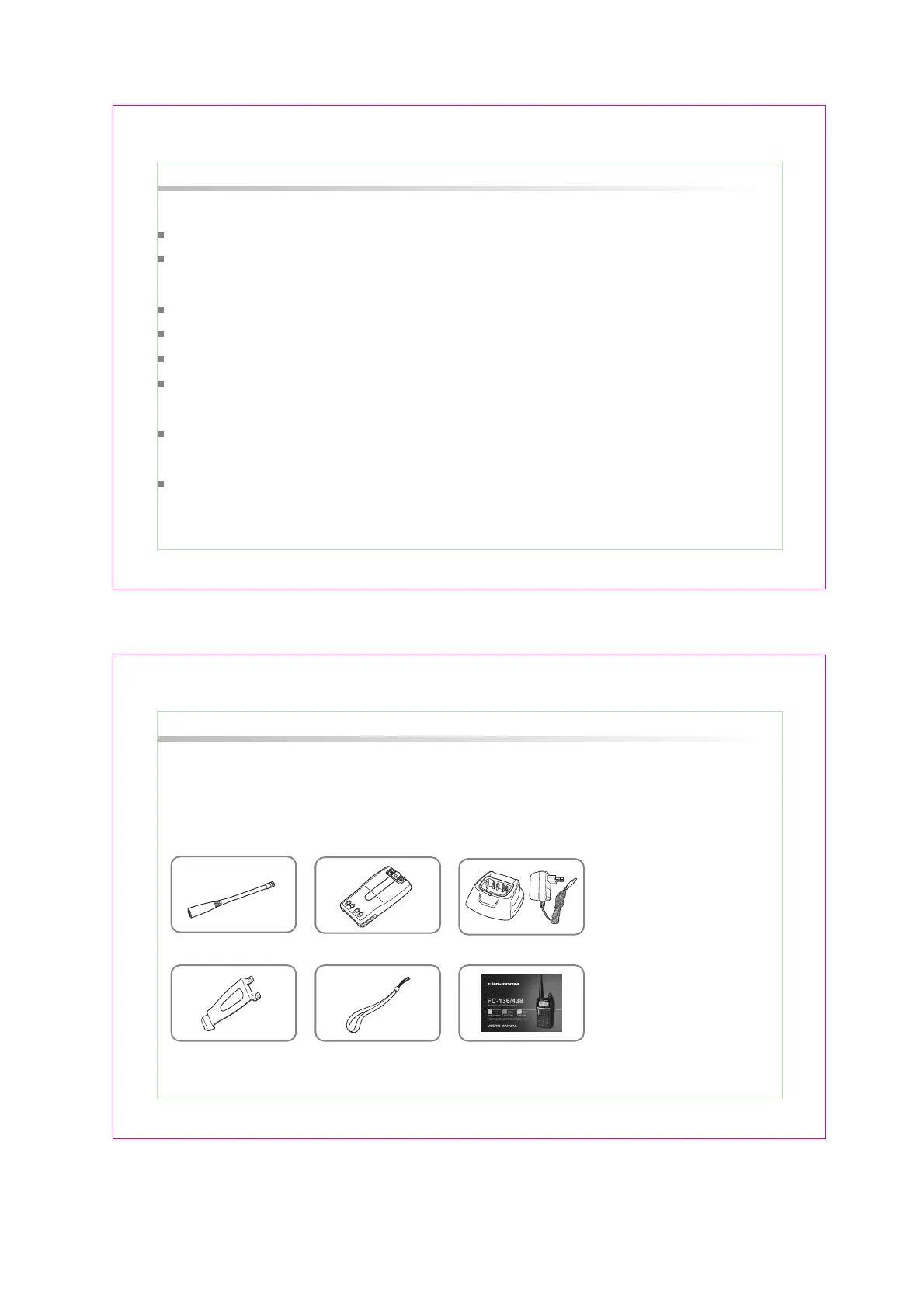 If it appears that the transceiver diffuses peculiar smell or smoke, please shut off its power immediately,