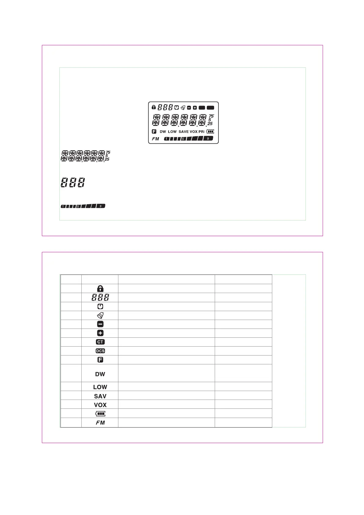 help you identification the icon which display on LCD.