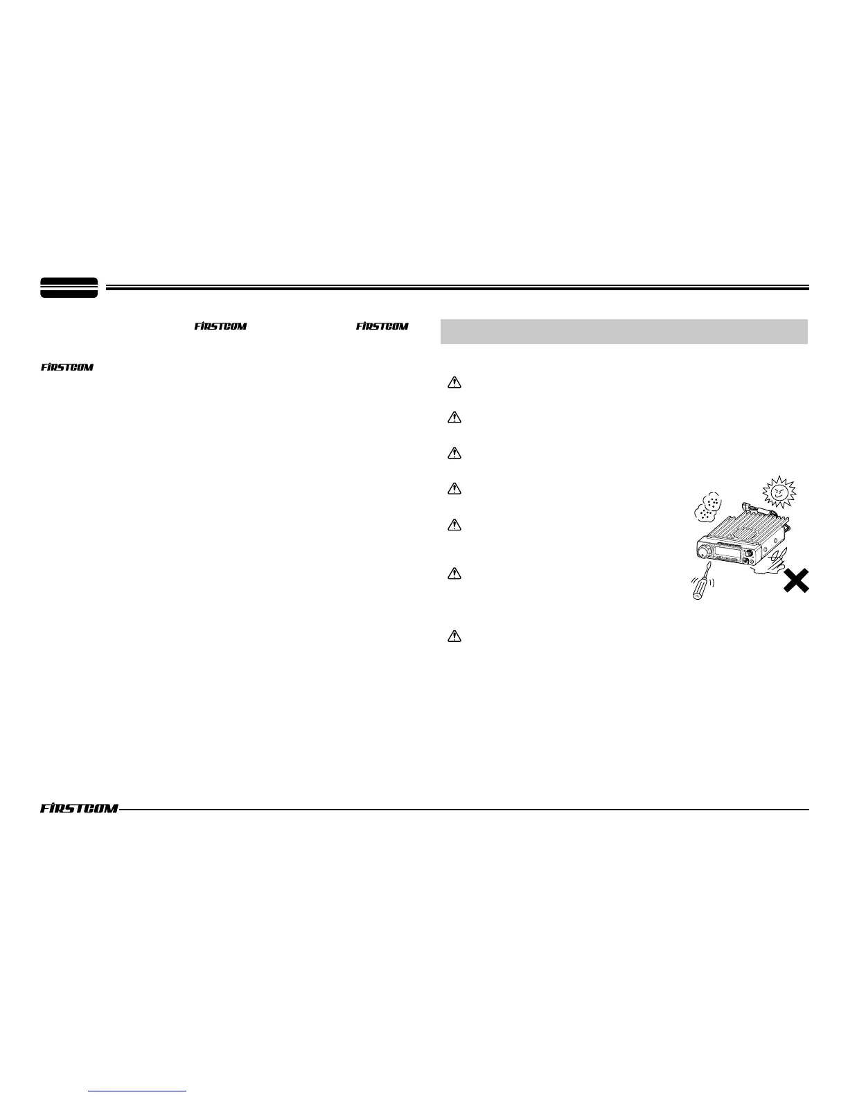 Do not place the transceiver in excessively dusty, humid or wet