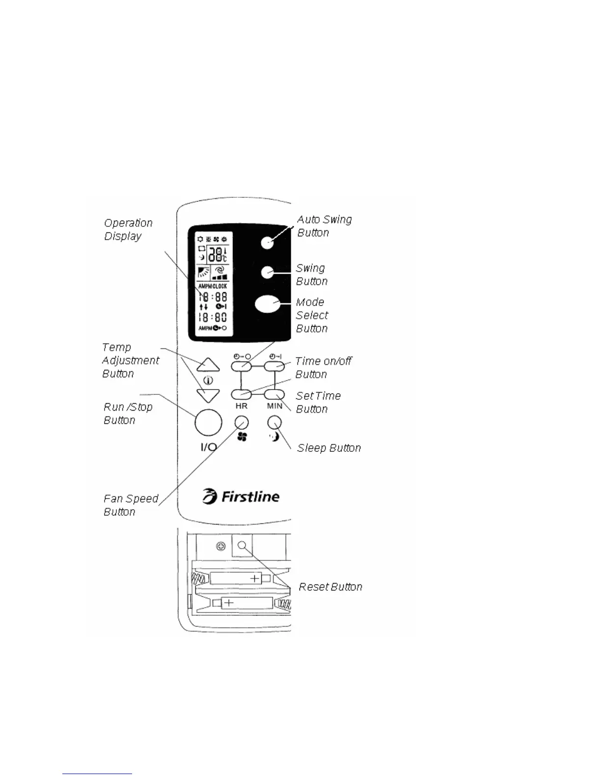 Firstline FCS12000CH - Remote Control Unit Overview; Display and Primary Buttons; Mode, Fan, and Timer Buttons