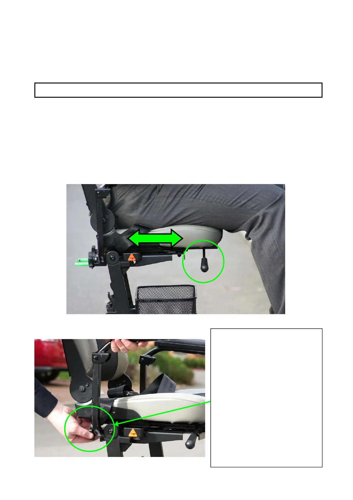 The seating on your scooter can be adjusted to various positions for your comfort. The