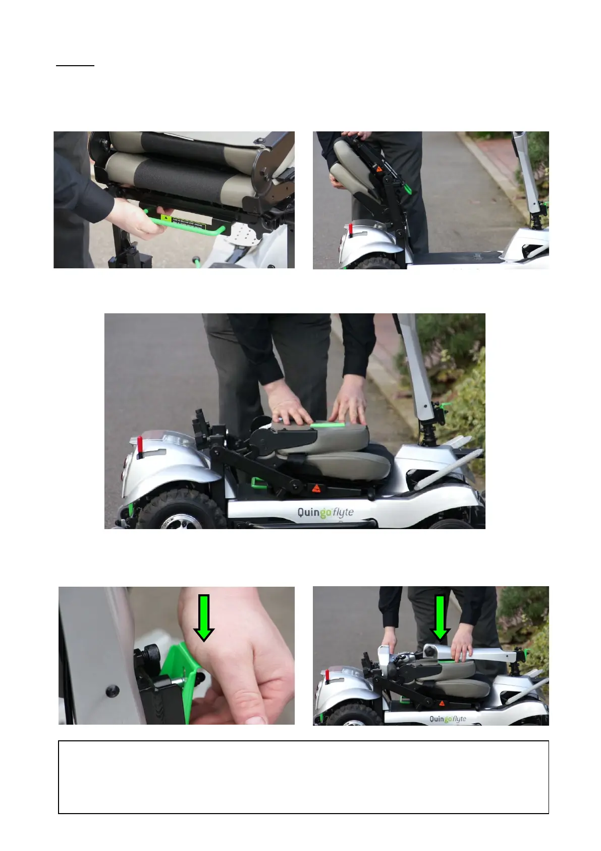 c) Now push the seat assembly forward where it will lower the scooter’s deck.