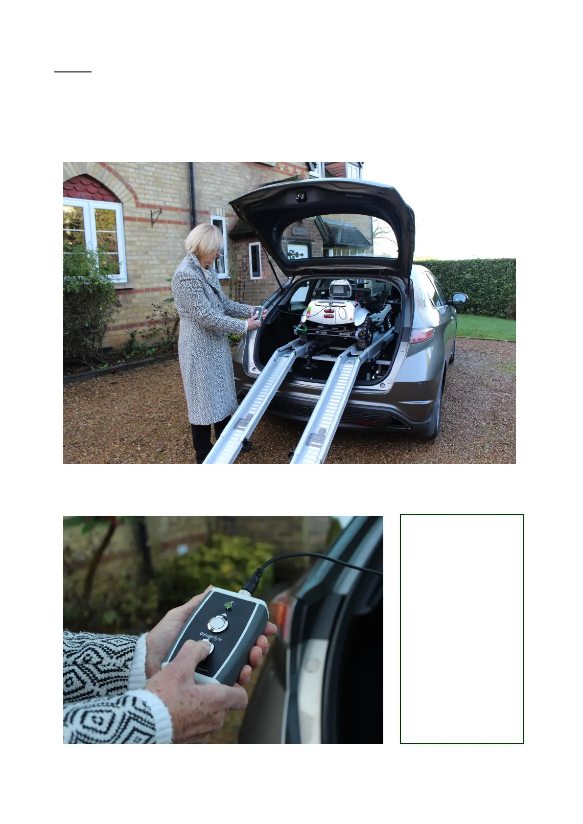 d) Press the silver ‘DOWN’ button continuously until the Quingo is fully clear of the rails.