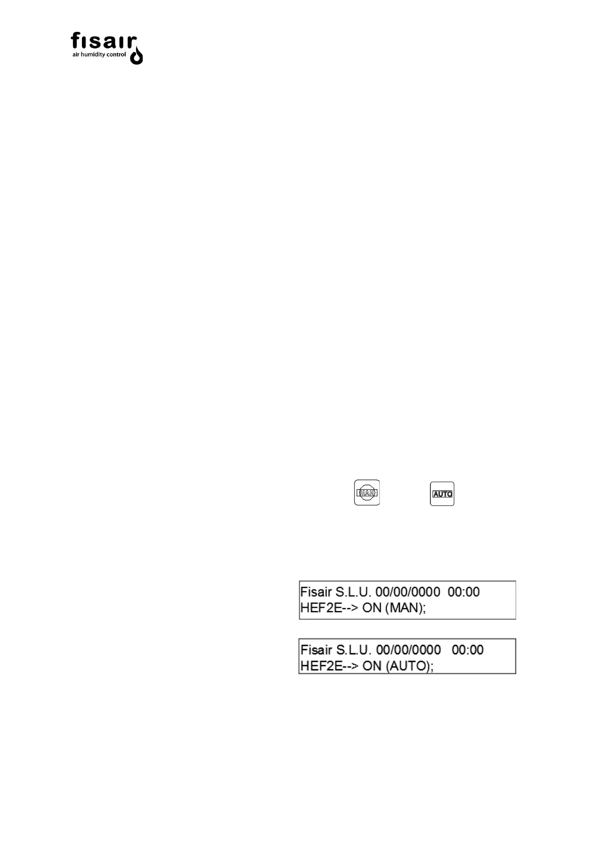 The desired working mode is selected using the MAN or AUTO buttons. (Remember
