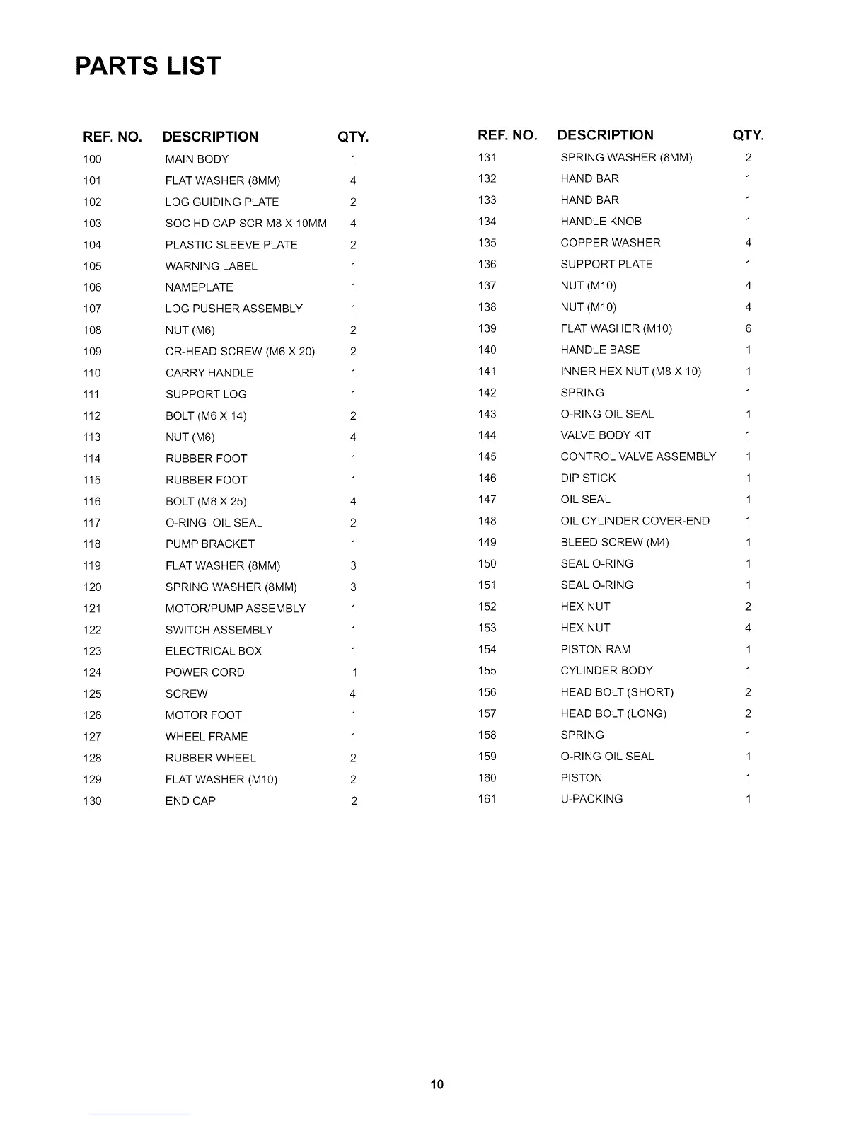 PARTS LIST