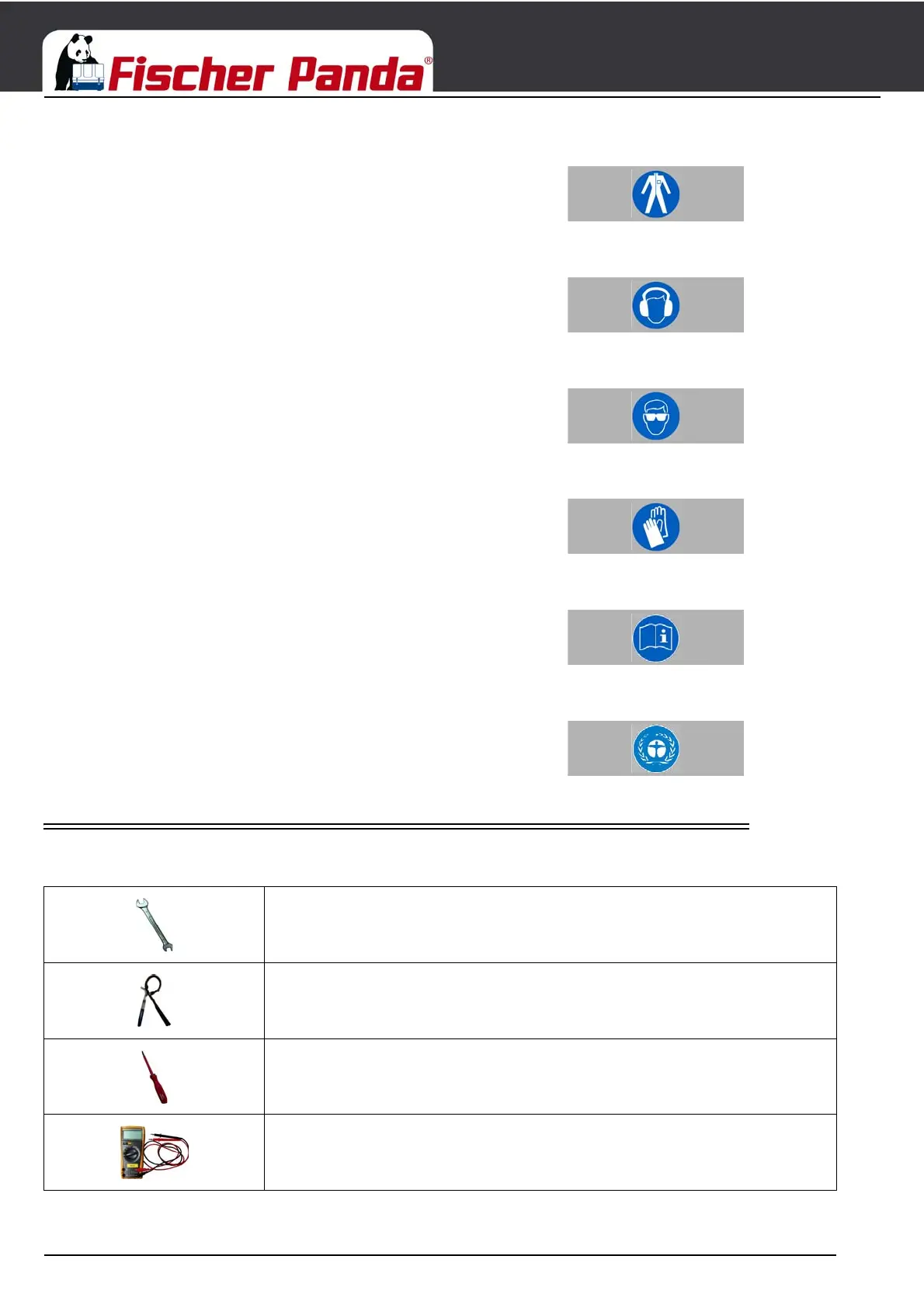 These symbols are used throughout this manual to show which tool must be used for maintenance or installation.