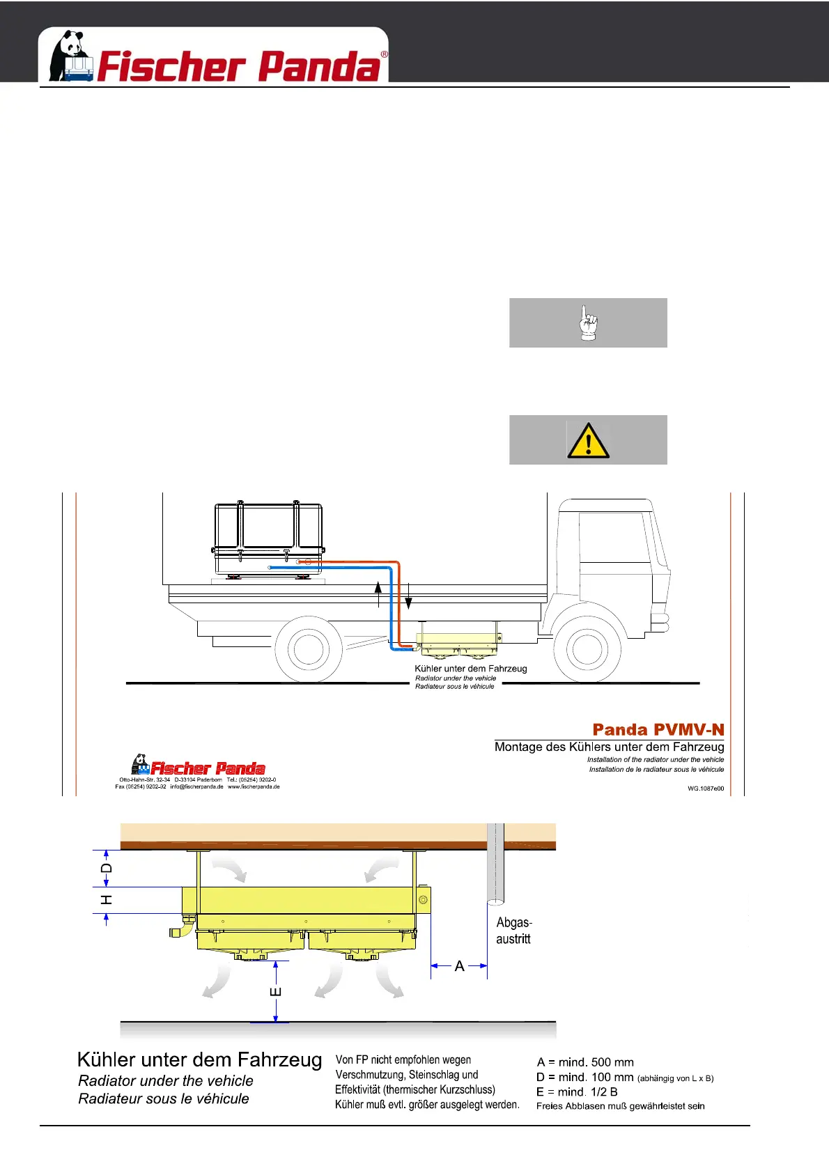 Note:Fischer Panda does not recommend underfloor