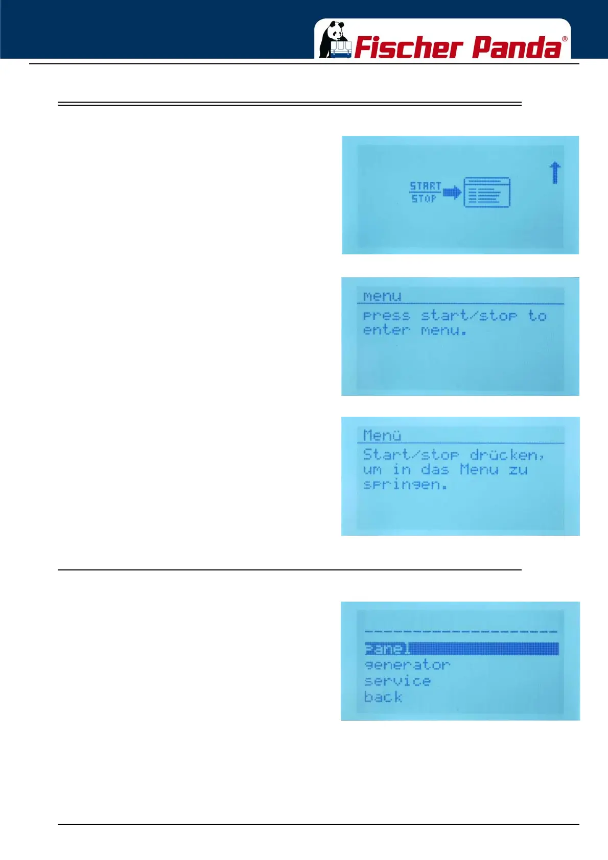 Fig. 11.5-3: Enter the menu screen german textPress the start/Stop - Enter button to enter the menu.